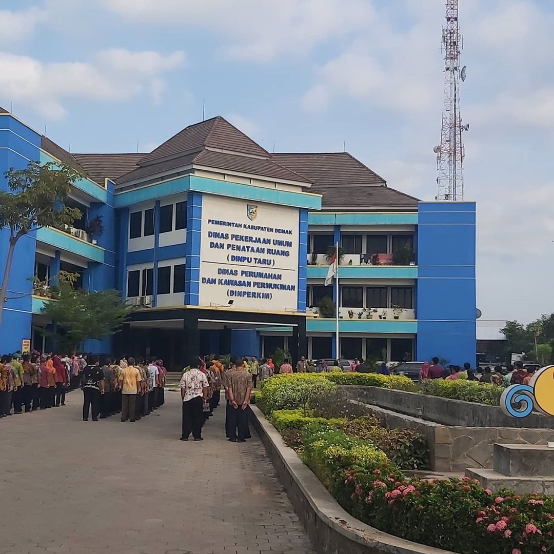 Pada pagi hari ini karyawan/i DINPUTARU melakukan rutinitas apel pagi di halaman DINPUTARU dan DINPERKIM Kabupaten Demak dengan penuh semangat meskipun cuaca tadi pagi terlihat sedikit mendung. Dengan di pimpin oleh Kepala DINPUTARU, Bapak Drs. Doso Purnomo, dalam amanatnya beliau meminta supaya kita selalu menjaga diri kita dan keluarga kita dalam pencegahan Covid-19. Semua karyawan/i di DINPUTARU maupun DINPERKIM harus tetap mematuhi protokol kesehatan, dikarenakan kasus Covid – 19 di Kabupaten Demak menduduki peringkat 2 se-Jateng. Beliau juga meminta kepada bagian Resepsionis supaya lebih ketat dalam menerima tamu dengan cara pengecekan suhu, pengisian formulir kunjungan tamu, serta mengenakan ID Card yang telah disediakan.