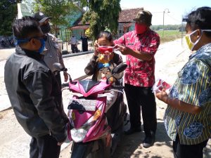 Demak, 15/09/2020 Selasa pagi Tim XI dari Dinputaru Kabupaten Demak mengambil masker di Setda Kabupaten Demak di bagian Orpeg. Tim XI yang di pimpin oleh Kepala Unit Pelaksana Teknis Daerah Pemeliharaan Jalan,Jembatan dan Irigasi Wilayah I Drs.Supardi beserta 3 staf menuju ke Kecamatan Kebonagung, setelah tiba di Kecamatan Kebonagung Tim XI bertemu dengan Camat Kebonagung untuk di berikan petunjuk dalam melaksanakan disiplin protokol kesehatan covid-19 di Desa Prigi Kecamatan Kebonagung Dempet Demak.Setelah tiba di lokasi Tim XI dengan di bantu satgas covid-19 dari Polsek dan Koramil Kebonagung serta satgas dari Kecamatan Kebonagung turut serta dalam melaksanakan disiplin protokol kesehatan di Desa Prigi,ternyata masih banyak warga di sekitar yang masih mengabaikan protokol kesehatan covid-19 tentang penggunaan masker dan menghindari kerumunan, tak hanya orang dewasa anak-anak pun harus di berikan sosialisasi tentang pentingnya menjalankan protokol kesehatan covid-19 di masa new normal ini.