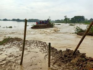Banjir akibat luapan setinggi lutut orang dewasa dan perkiraan jebolnya tanggul sudah mencapai 25 meter. Pihak Dinputaru sudah bekerja sama dengan BBWS Pemali Juana Semarang terkait jebol nya tanggul sungai kali tuntang yang menjadi kewenangan BBWS. Hadir pula Wakil Bupati Demak,Kapolres,Ndandim,Camat Bonang,Kapolsek Bonang,Kepala Dinas Sosial,Kepala BPBD. Pengiriman alat berat juga terkendala dengan mobilisasi yang susah untuk menuju ke lokasi.