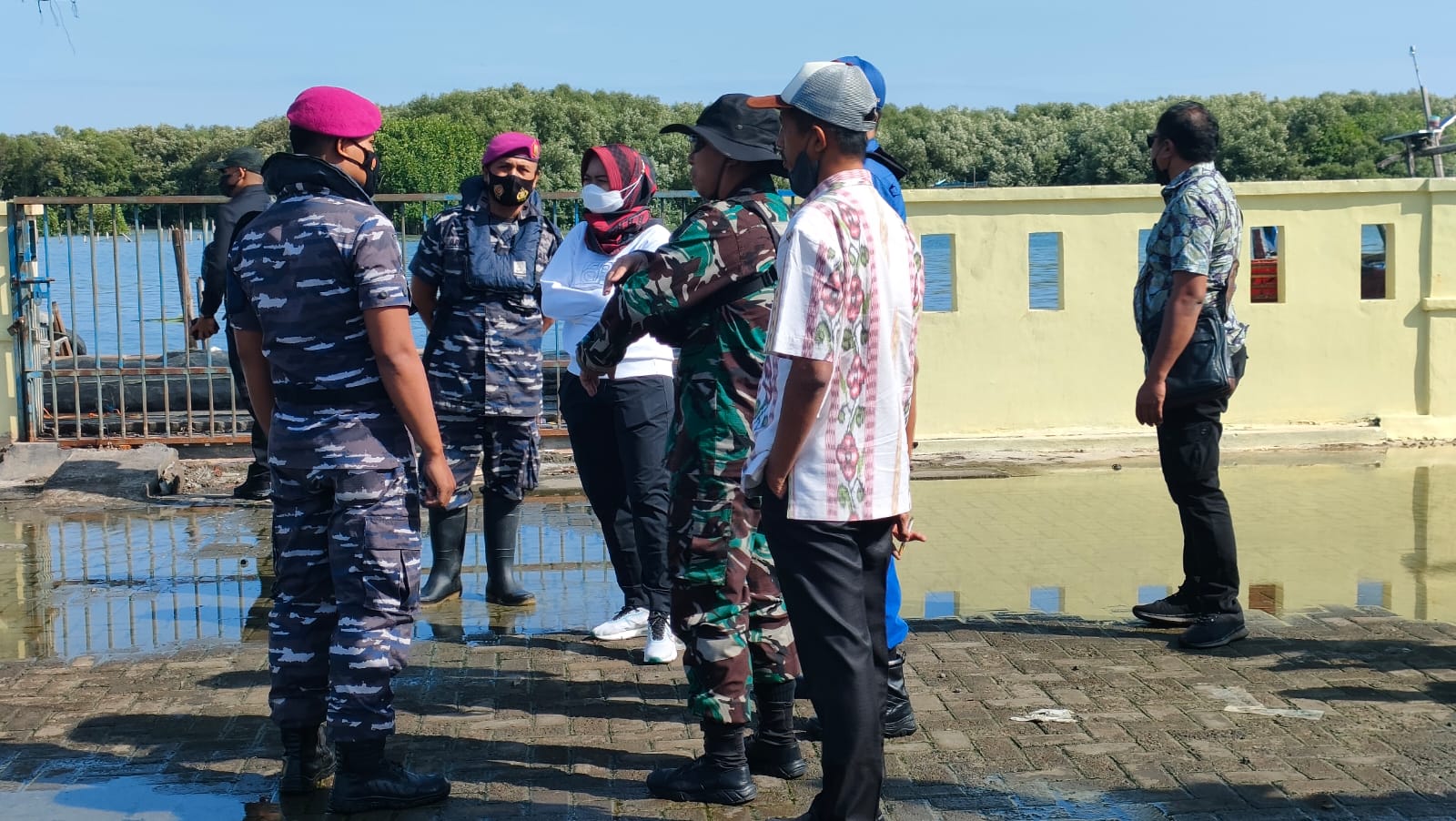 Demak – 28 Juni 2022, Bupati Demak Ibu dr. Hj Eisti’anah, S.E. bersama Kepala Dinas Pekerjaan Umum dan Penataan Ruang Kabupaten Demak Bapak Akhmad Sugiharto, S.T., MT serta perwakilan Badan Penanggulangan Bencana Daerah Kabupaten Demak, Kodim Demak, Polsek Bonang melakukan survey daerah kawasan pesisir Kabupaten Demak.