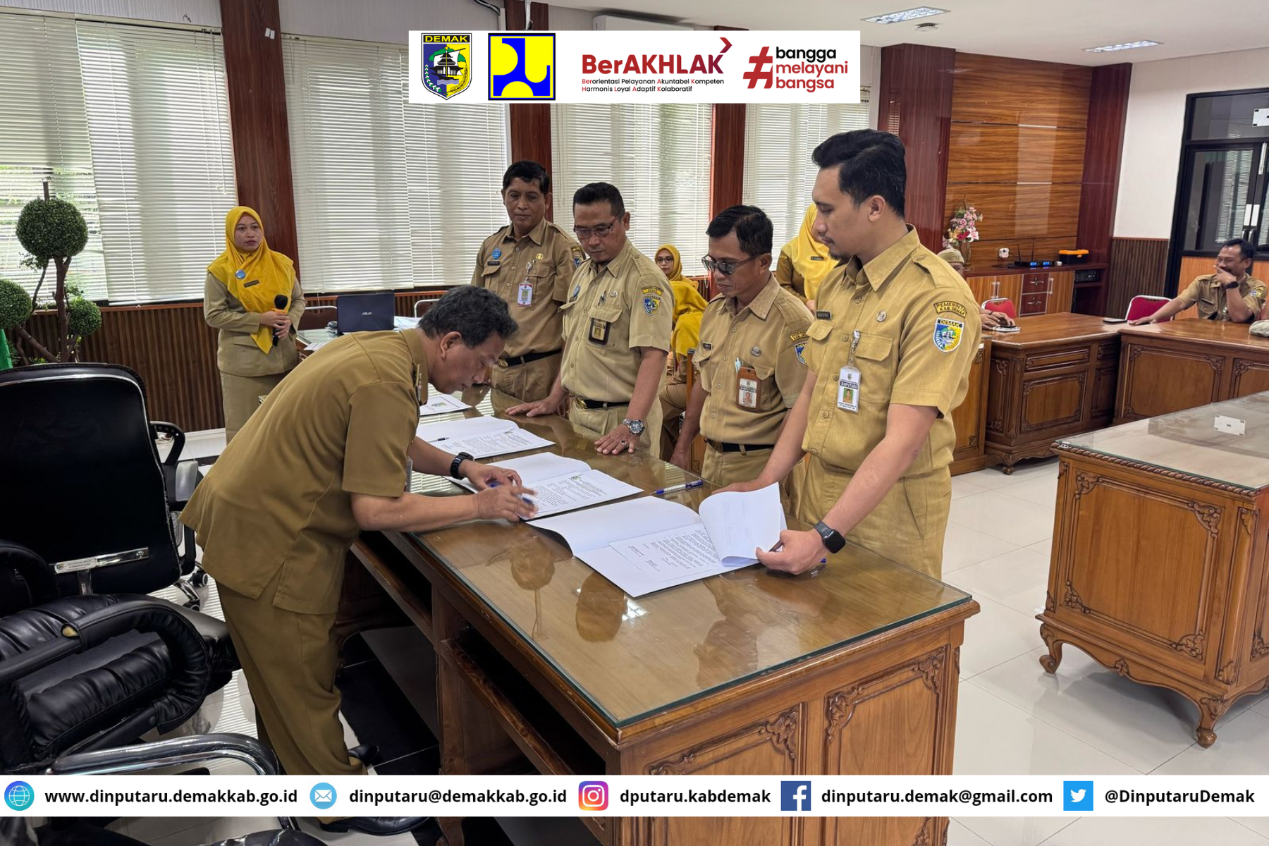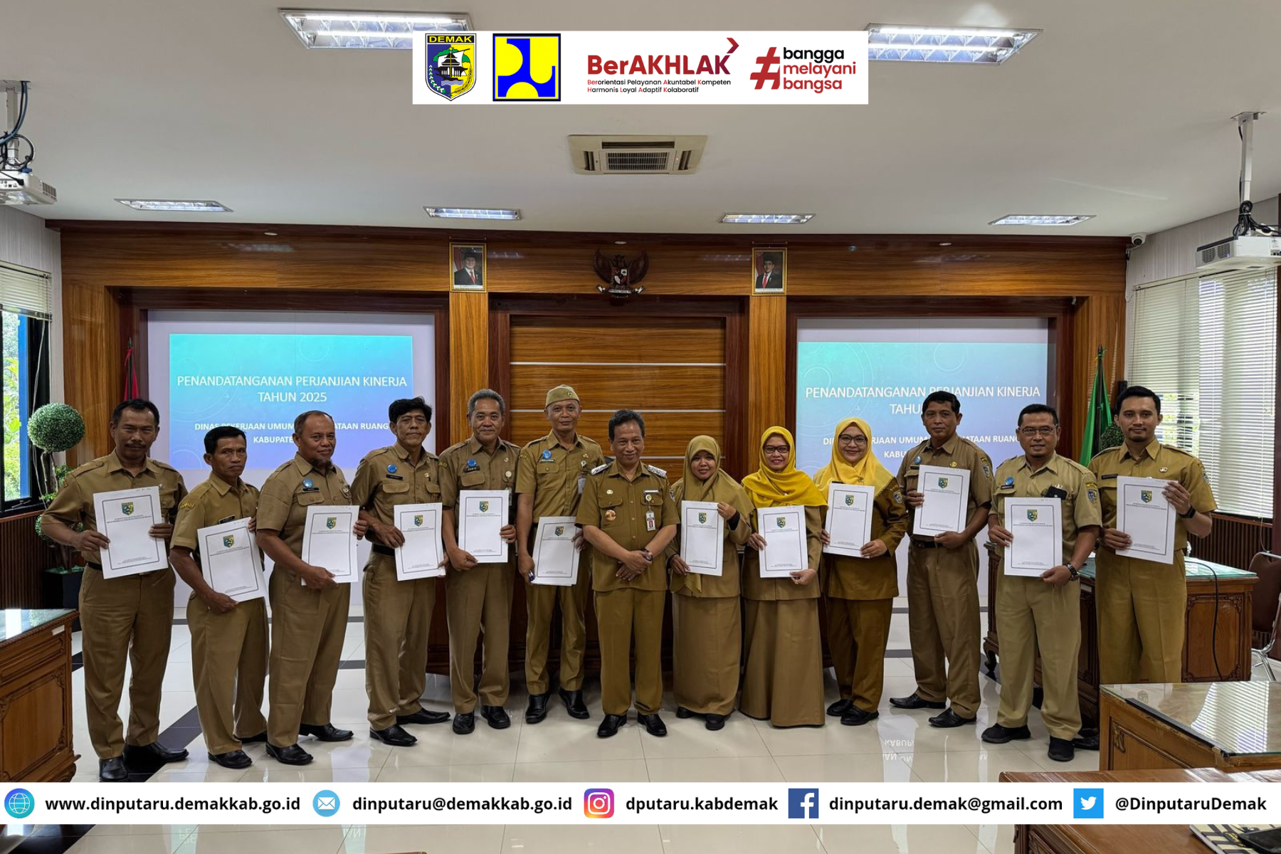 Dinas Pekerjaan Umum dan Penataan Ruang Kabupaten Demakbaru saja melaksanakan Penandatanganan Perjanjian Kinerja yang dihadiri oleh kepala bidang kasubbag Subkor dan Kepala UPTD rapat dipimpin oleh Kadinas Amir Mahmud, S.Sos, M.T