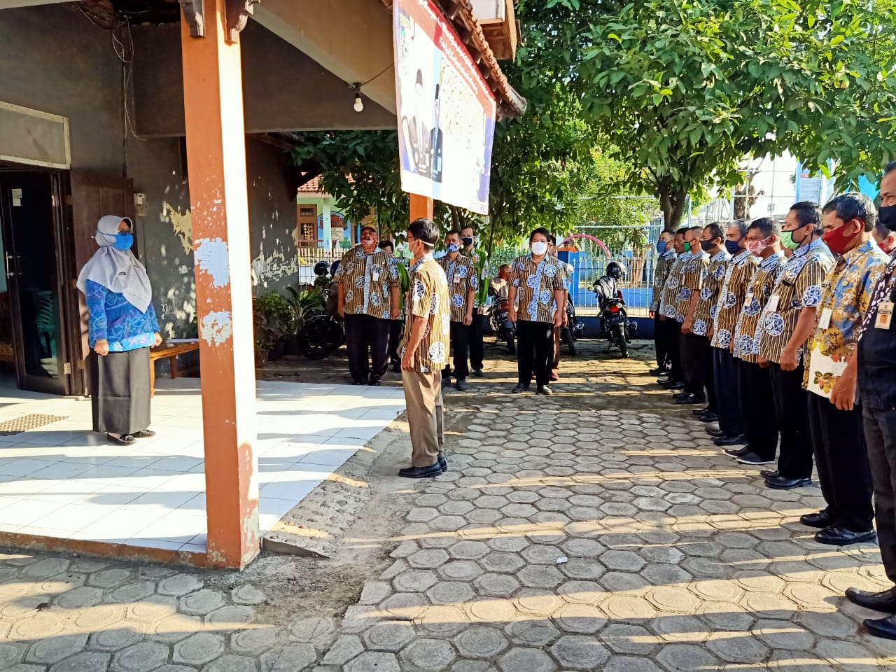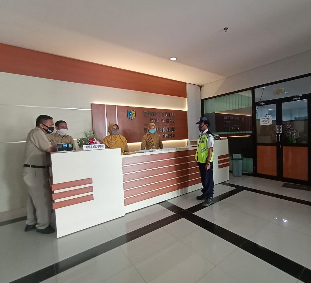SEKRETARIS DINPUTARU MEMBERIKAN ARAHAN KEPADA STAF DAN SATPAM TERKAIT PEMBATASAN PEDAGANG / KURIR YANG MASUK KE KANTOR DINPUTARU KAB. DEMAK